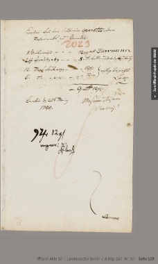 Zum Iffland-Projekt der BBAW Iffland-Akte 10 ı Landesarchiv Berlin ı A Rep. 167 Nr. 10 Seite 129