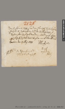 Zum Iffland-Projekt der BBAW Iffland-Akte 10 ı Landesarchiv Berlin ı A Rep. 167 Nr. 10 Seite 317