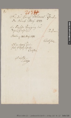 Zum Iffland-Projekt der BBAW Iffland-Akte 10 ı Landesarchiv Berlin ı A Rep. 167 Nr. 10 Seite 329