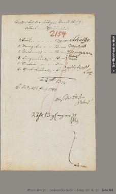 Zum Iffland-Projekt der BBAW Iffland-Akte 10 ı Landesarchiv Berlin ı A Rep. 167 Nr. 10 Seite 369
