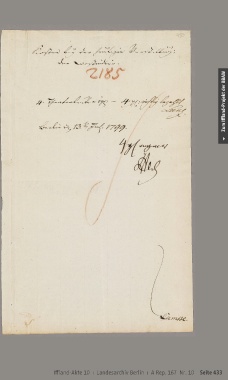 Zum Iffland-Projekt der BBAW Iffland-Akte 10 ı Landesarchiv Berlin ı A Rep. 167 Nr. 10 Seite 433