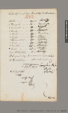 Zum Iffland-Projekt der BBAW Iffland-Akte 10 ı Landesarchiv Berlin ı A Rep. 167 Nr. 10 Seite 65