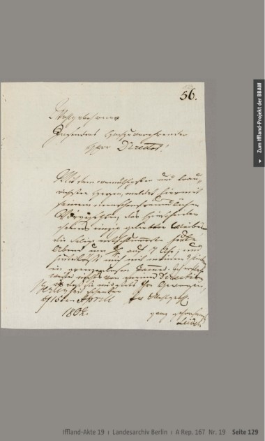 Zum Iffland-Projekt der BBAW Iffland-Akte 19 ı Landesarchiv Berlin ı A Rep. 167 Nr. 19 Seite 129