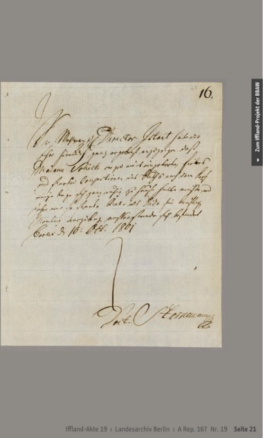 Zum Iffland-Projekt der BBAW Iffland-Akte 19 ı Landesarchiv Berlin ı A Rep. 167 Nr. 19 Seite 21