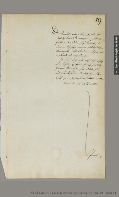 Zum Iffland-Projekt der BBAW Iffland-Akte 19 ı Landesarchiv Berlin ı A Rep. 167 Nr. 19 Seite 33
