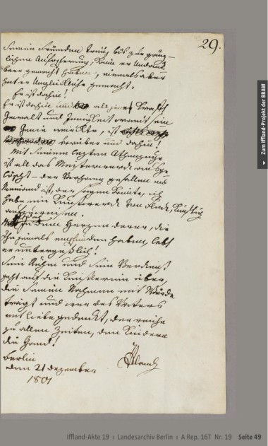 Zum Iffland-Projekt der BBAW Iffland-Akte 19 ı Landesarchiv Berlin ı A Rep. 167 Nr. 19 Seite 49