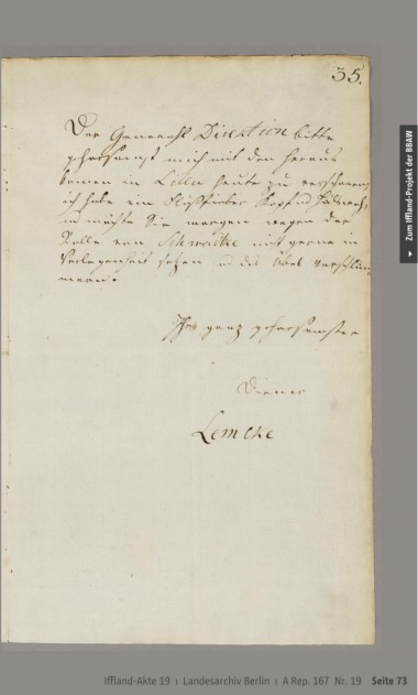 Zum Iffland-Projekt der BBAW Iffland-Akte 19 ı Landesarchiv Berlin ı A Rep. 167 Nr. 19 Seite 73