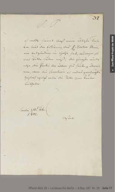 Zum Iffland-Projekt der BBAW Iffland-Akte 19 ı Landesarchiv Berlin ı A Rep. 167 Nr. 19 Seite 77