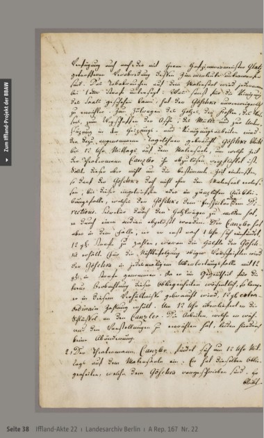 Zum Iffland-Projekt der BBAW Seite 38 Iffland-Akte 22 ı Landesarchiv Berlin ı A Rep. 167 Nr. 22