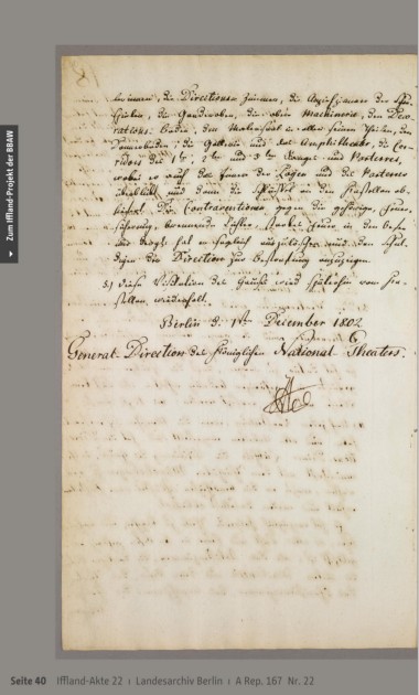 Zum Iffland-Projekt der BBAW Seite 40 Iffland-Akte 22 ı Landesarchiv Berlin ı A Rep. 167 Nr. 22