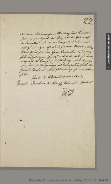 Zum Iffland-Projekt der BBAW Iffland-Akte 22 ı Landesarchiv Berlin ı A Rep. 167 Nr. 22 Seite 55