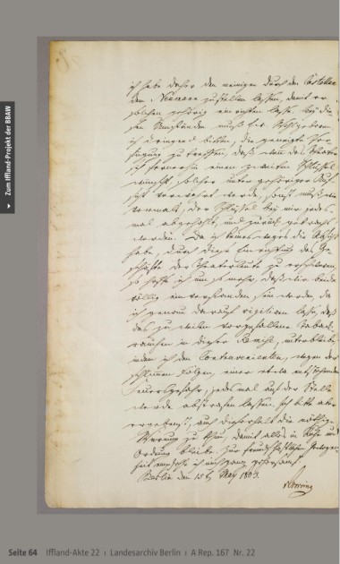 Zum Iffland-Projekt der BBAW Seite 64 Iffland-Akte 22 ı Landesarchiv Berlin ı A Rep. 167 Nr. 22