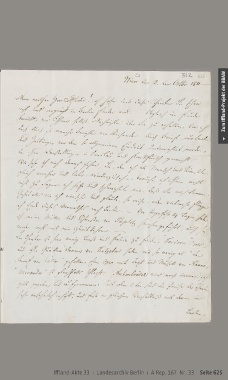 Zum Iffland-Projekt der BBAW Iffland-Akte 33 ı Landesarchiv Berlin ı A Rep. 167 Nr. 33 Seite 625