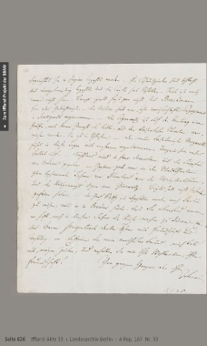 Zum Iffland-Projekt der BBAW Seite 626 Iffland-Akte 33 ı Landesarchiv Berlin ı A Rep. 167 Nr. 33