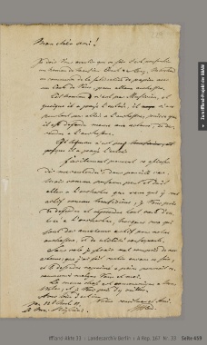 Zum Iffland-Projekt der BBAW Iffland-Akte 33 ı Landesarchiv Berlin ı A Rep. 167 Nr. 33 Seite 459