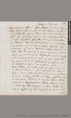 Zum Iffland-Projekt der BBAW Iffland-Akte 33 ı Landesarchiv Berlin ı A Rep. 167 Nr. 33 Seite 791