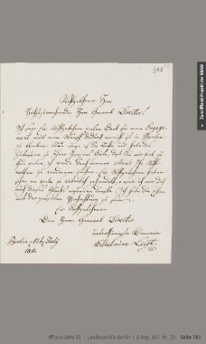 Zum Iffland-Projekt der BBAW Iffland-Akte 33 ı Landesarchiv Berlin ı A Rep. 167 Nr. 33 Seite 797