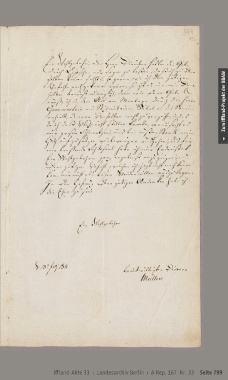 Zum Iffland-Projekt der BBAW Iffland-Akte 33 ı Landesarchiv Berlin ı A Rep. 167 Nr. 33 Seite 799