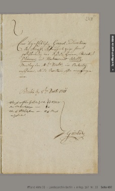 Zum Iffland-Projekt der BBAW Iffland-Akte 33 ı Landesarchiv Berlin ı A Rep. 167 Nr. 33 Seite 497