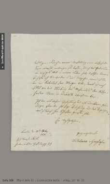 Zum Iffland-Projekt der BBAW Seite 500 Iffland-Akte 33 ı Landesarchiv Berlin ı A Rep. 167 Nr. 33