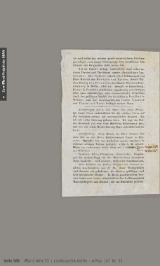 Zum Iffland-Projekt der BBAW Seite 506 Iffland-Akte 33 ı Landesarchiv Berlin ı A Rep. 167 Nr. 33